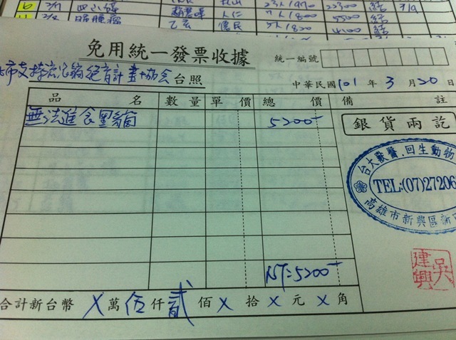 收據可抵稅請將地址mail至cashier@tnrtw.org0912940006763