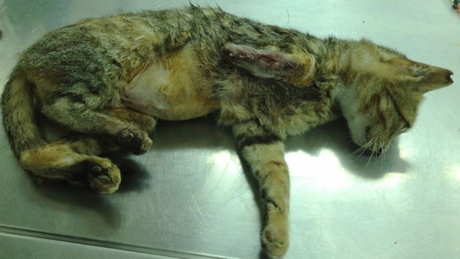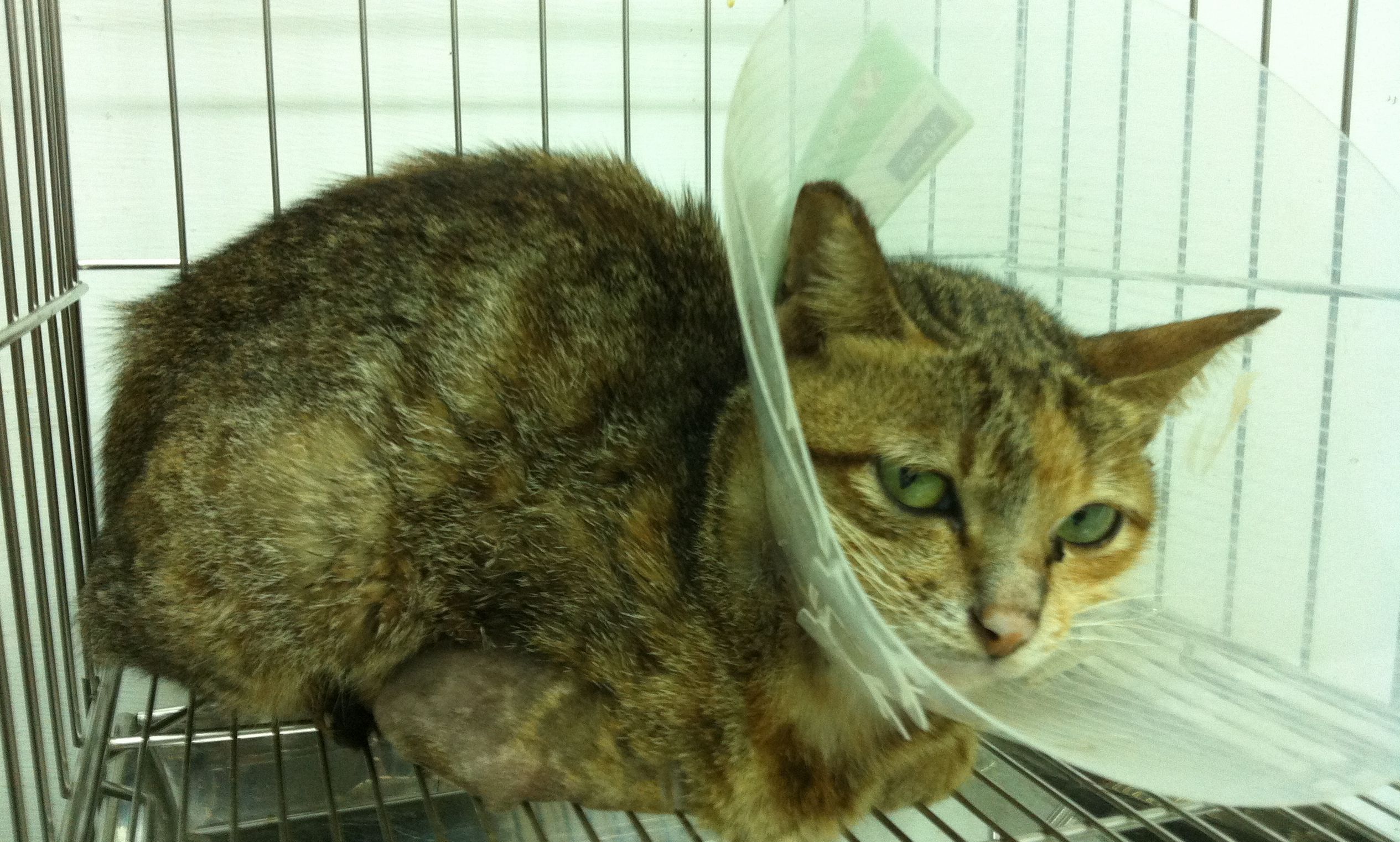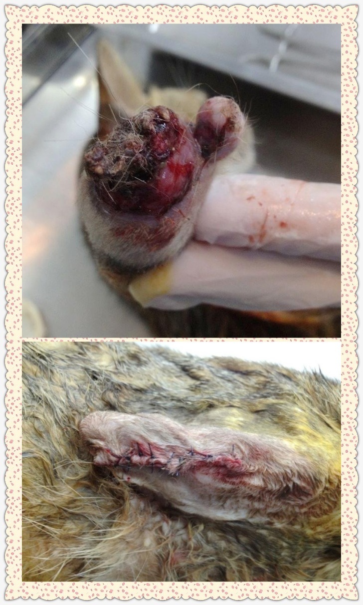 2.右後腳被獸夾傷裂開, 作縫線處理