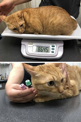 在安養之家受到細心呵護,讓金玉很快就長成帥氣的大貓,每天開心的玩耍嬉鬧,但2022年1月時出現精神不好、沒有活力至長青醫院檢查,有發燒、血檢營養狀況下降及A/G比也處於灰色地帶及超音波檢查發現淋巴結腫大等等症狀,雖然X光沒有發現胸水,但醫師認為腹膜炎的機會很大,淋巴結腫大未排除腫瘤的可能性,醫師認為以現階段送驗病毒並無太大意義,先給予症狀治療如打皮下輸液、開食促及B12,並依照協會照護腹膜炎貓咪經驗,開始給予腹膜炎保健品。