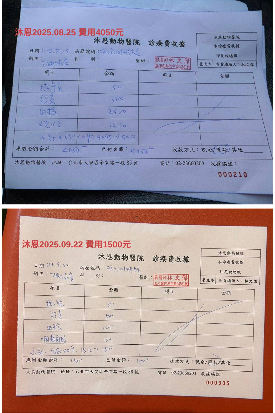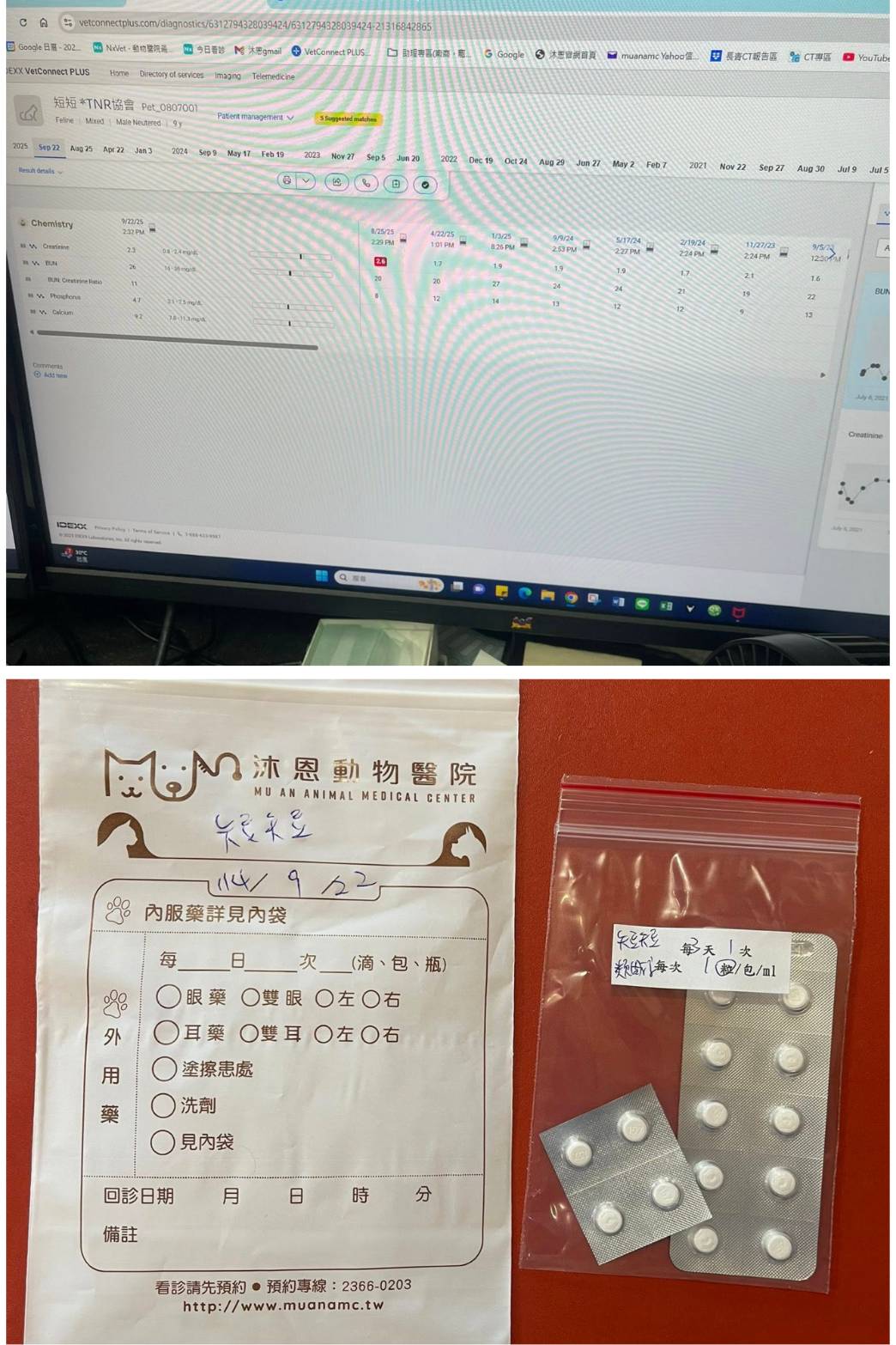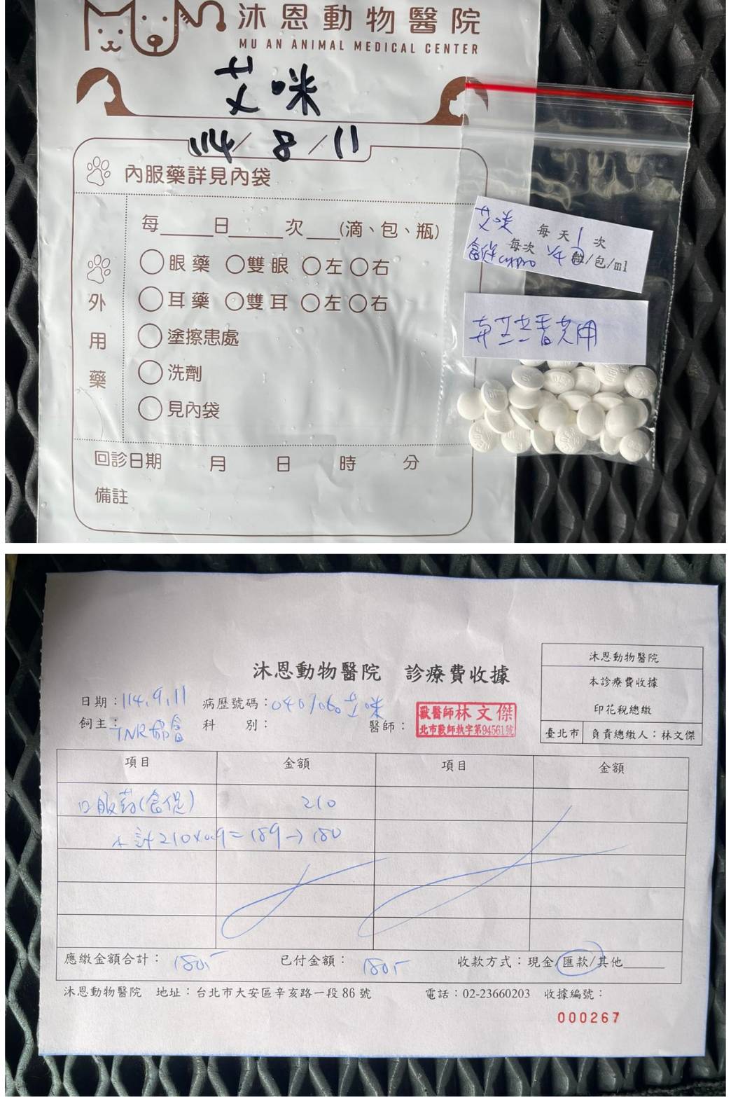短短目前食慾精神都很好、皮膚沒有再出現新患處,短短的個性較為膽小緊張,每次看診時都要用大毛巾將頭臉裹住,還好有照護員細心陪伴安撫,讓短短現在有較為放鬆了,短短的皮膚狀況雖然已穩定許多,但因還在用藥所以往後還是需要持續回診追蹤,本筆醫助是2025年8月25日至2025年9月22日於沐恩醫院回診的費用,包含血檢及用藥。