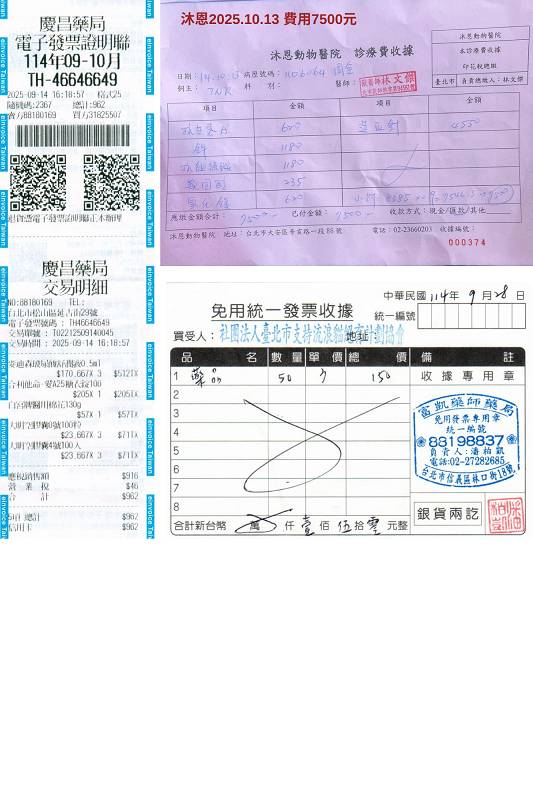 2025/9/14-TH-46646649-慶昌藥局-玻尿酸3盒、合利他命1、0號膠囊3、4號膠囊3、棉花1 $962