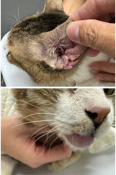 2025年10月16日於沐恩看診,因病毒感染長期無法抑制,所以耳朵及嘴巴總是會持續紅腫,需加強清潔保持乾淨。紅血球與球蛋白皆超出標準範圍,同時也須注意精神食慾狀況,若變差則需要盡速與醫院連繫回診。