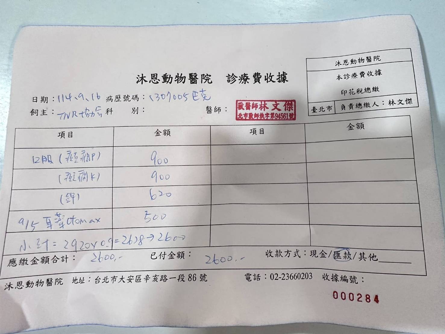 主題: 終身癲癇治療的巴克 申請者姓名: TNR協會 花色: 申請日期: 2025-10-23 12:46:38 申請者部落格: https://www.facebook.com/SupportTNR/ 申請者臉書網址: https://www.facebook.com/SupportTNR/ 所在縣市/合作醫院: 台北市/沐恩動物醫院 治療費用: 11400元 需求名額: 38人 平均每單位: 300元 已報名名額: 7 尚需求名額: 31 報名人員: 1.Ayahsu x2 (已付款)