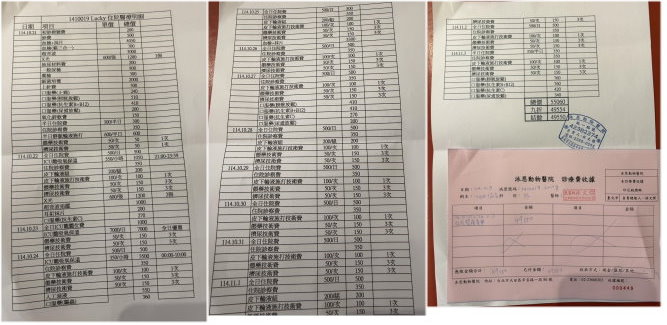 在院期間一日三餐,40-40-40g 雞肉泥或是罐頭,20-10-20g GI32 飼料,可將身體扶正自己會慢慢吃光。