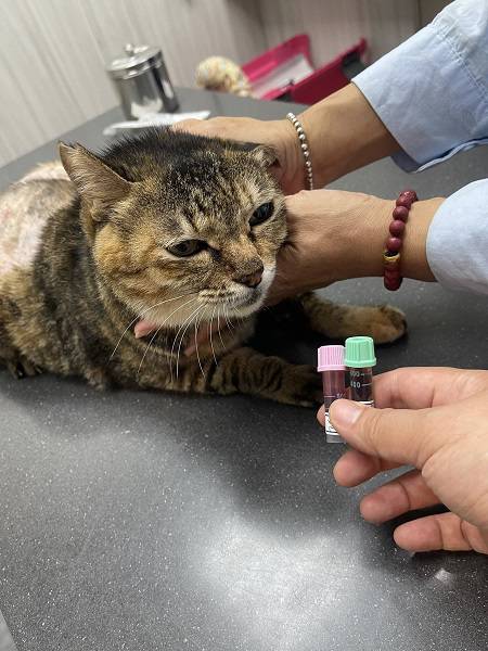 候補人員: 因考慮無人遞補、轉匯收費、信用卡刷卡匯率、寄送收據與郵資等成本,每筆醫助人數將斟酌彈性增加1-5位名額。 動物病情說明: 定著是協會在2019年3月22日救援的貓咪,當時志工執行tnr任務至傍晚準備收工時,看到一隻肚子大大的貓咪出現,邊走邊搖頭晃腦像是農藥中毒,志工拿手邊剩下的罐頭給她吃頓飽,結果貓咪轉身就撞到旁邊的磚塊摔個四腳朝天,還滾到旁邊小斜坡,志工見狀心疼到不行,於是硬把誘捕籠空出一個來誘捕,帶回台北醫院檢查,照超音波、觸診都認為無懷孕,肚子腫脹極可能是吃不潔食物,血檢二合一檢查是愛滋陽性,經詢問神經專科醫師後,為定著選擇氣麻結紮,術後住院休養幾日,待狀況穩定後便接回協會安養之家,並為貓咪取名"定著"(台語發音),希望她的抖抖情況能逐漸好轉。