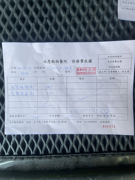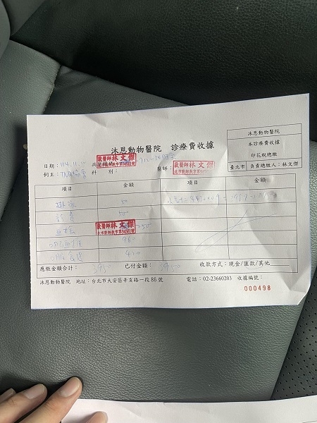 2025年11月12日回診,腎指數已有下降但仍超出正常範圍值,不過整體狀況看起來還可以,需要注意是否有食慾不佳的問題因體重有稍下降。耳朵一樣須保持每日清潔。本筆醫助是2025年10月13日至2025年11月12日間於沐恩醫院看診、血檢及取藥的費用。