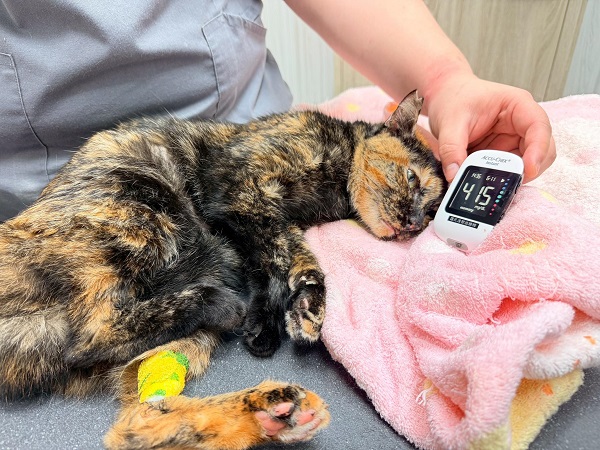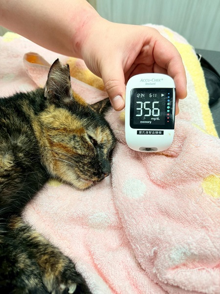 後於2025年11月3日再回診,此次追蹤糖尿病症狀, 體重減輕且血糖持續升高,因此需要開始施打胰島素,同時吃飯需定時定量,密切注意吃飯狀況與紀錄,盡量在四個小時內吃完。若是食慾不佳則須提前回報。