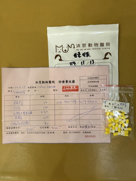 目前妹妹在台北安養之家這段時間, 已可以看見她逐漸放鬆適應, 只要呼喚她都會溫柔的回應,希望能讓妹妹的老年生活穩定控制病情。本筆醫助是妹妹自2025年11月6日至2025年11月13日間於沐恩醫院的費用,包含回診、血糖檢測及用藥等等。