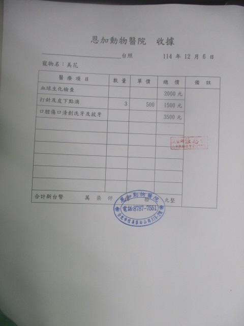 候補人員: 因考慮無人遞補、轉匯收費、信用卡刷卡匯率、寄送收據與郵資等成本,每筆醫助人數將斟酌彈性增加1-5位名額。 動物病情說明: 美花是十幾歲的老貓,原本是漂漂亮亮的白底三花貓,兩個月前,她的右邊嘴角突然拖著長長的口水,右臉頰腫漲,無法吃東西,整支貓變得髒亂黏膩