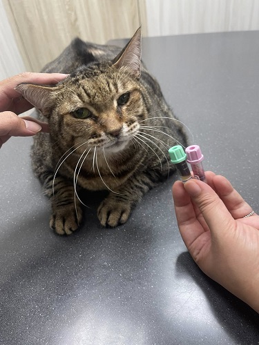近期於2025年7月4日回診,體重持續增加,血檢結果除了免疫球蛋白上升,其他指數都在正常值,後腳的小瘤大小也沒有變化,鼻涕淚眼情況還好,整體檢查結果還算穩定,抗生素再吃兩個月就可停藥,體重增加很多,食慾促進劑要減量,醫師表示每週體重測量連續兩週都增加,就要先停吃食慾促進劑並回報,無異常可延長為2個月再回診。