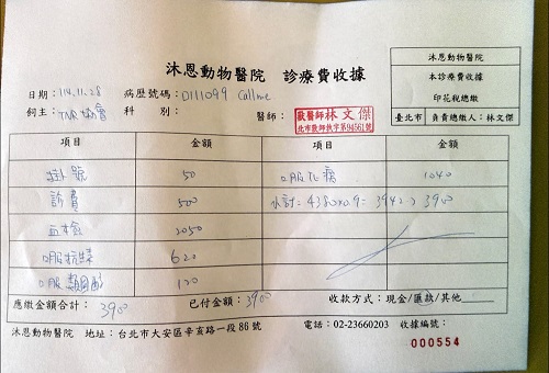 候補人員: 因考慮無人遞補、轉匯收費、信用卡刷卡匯率、寄送收據與郵資等成本,每筆醫助人數將斟酌彈性增加1-5位名額。 動物病情說明: Callme是2012年在新北市某一建築工地的夾層中被人發現,當時已奄奄一息,工地主任想把Callme棄置到垃圾桶,幸好有位好心同事央求留下,並透過友人聯絡協會粉絲團,志工緊急前往協助將Callme送醫。