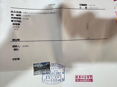 收據可抵稅請將地址mail至cashier@tnrtw.org0912940006763