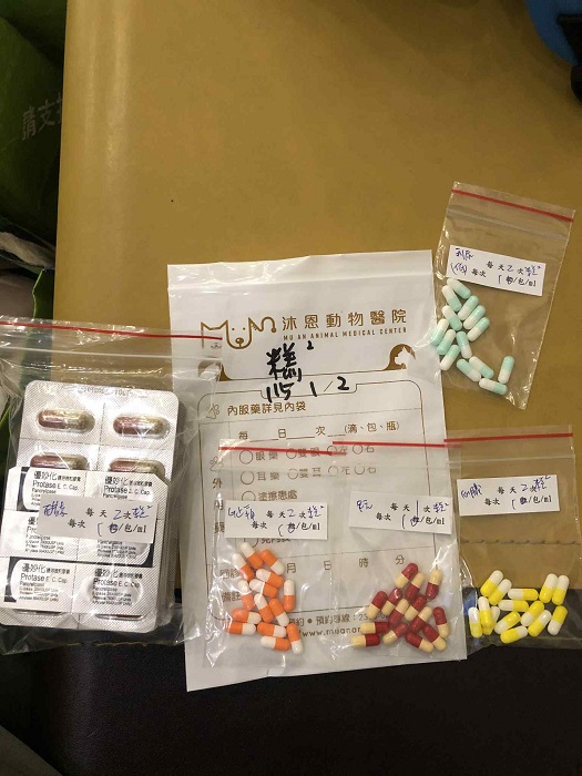 糕糕自2021年10月回診開始出現肝指數升高,超音波檢查結果肝臟本身沒有問題、胰臟有小小的黑洞影像,開始吃肝藥及酵素,後來又發現腸道淋巴結出現腫大情形,2022年4月間超音波檢查胰臟發炎及胰臟旁邊淋巴結腫大,細針採樣抹片查看結果是有活躍的淋巴細胞,但還沒有大到癌化細胞的程度,2022年8月胰臟與12指腸間的團塊影像變大,對照以往超音波紀錄,此團塊也曾出現忽大忽小的情況,但在體重沒有變輕的情況下,或許團塊只是淋巴結腫或是良性瘤,因為團塊與肝指數的變化情況類似,懷疑可能是食物引起,開始打皮下輸液,一個月後回診的肝指數有下降了,因此研判先前肝指數過高可能是環境因素暫時影響,而腹部腫塊屬發炎性,跟肝指過高應沒關係,之後持續的回診,肝指數仍是高於正常值,腸繫膜淋巴結腫也仍一直存在,雖沒有出現像惡性腫瘤的變化,但醫師仍不能排除淋巴癌的可能性,要確定必須開腹探查,但協會考量到糕糕個性極為緊張,每次看診都要蓋住大毛巾才能進行,所以開腹探查手術過程造成的傷口或是住院,會讓糕糕疼痛及造成很大緊迫,所以只要糕糕精神食慾都穩定,就不手術、再觀察看看,維持吃藥控制的方式及定期回診做檢查。