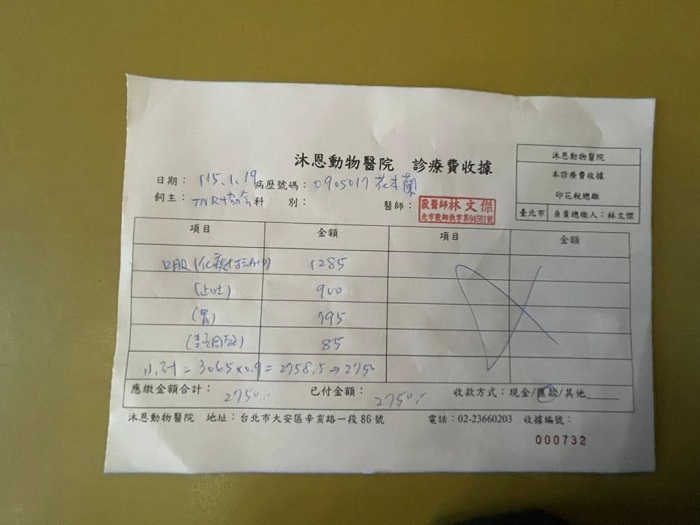 花木蘭是很漂亮的三花女生,雖然實際年齡很大,但本貓臉蛋還是相當美貌,她的個性較為緊張害羞,所以看診時都要用大毛巾裹住減少緊張,希望在持續治療後,能讓她的健康逐漸穩定;本筆醫助是2025年12月24日至2026年1月19日間於沐恩醫院看診的費用,包含血檢及用藥。