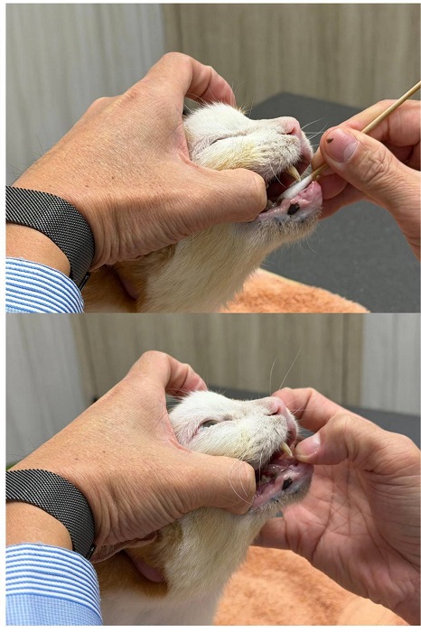 觸診與外觀檢查,口腔檢查發現有牙周病、齒吸收,