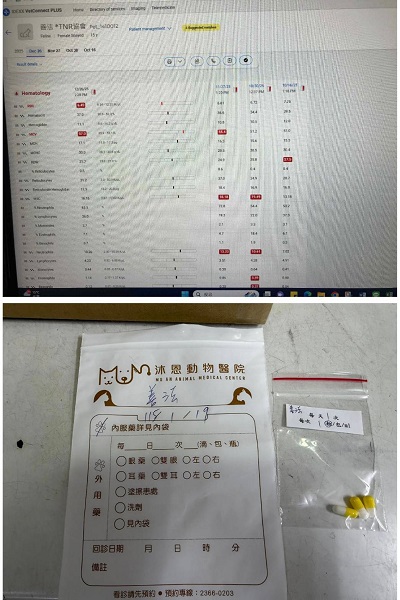 後於2025年10月16日回診, 肝腎指數偏高有疑似大腸炎,開立止瀉用藥,若有改善可再減少用藥。再於同月30日回診加做糞檢檢驗,糞便裡目前來看是無蟲狀態,但醫生指示須再檢驗一次確保狀況。此次白血球也升高,應與過敏原相關。