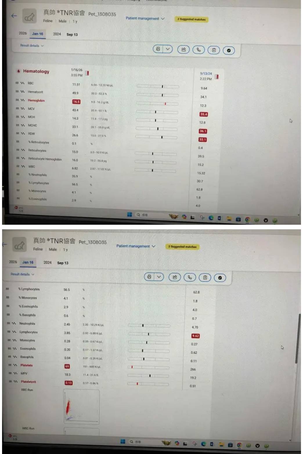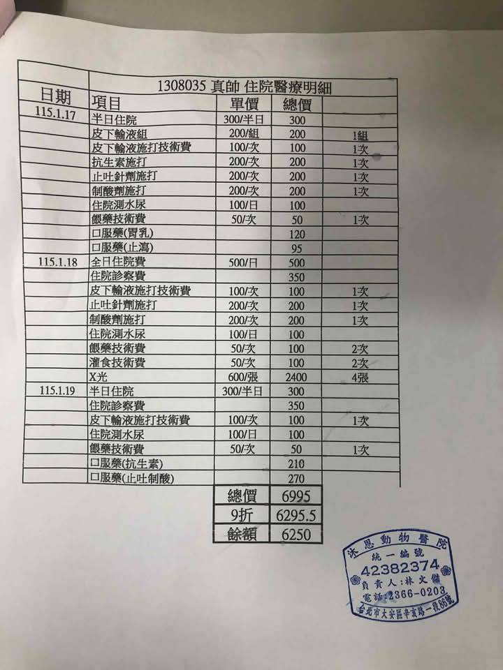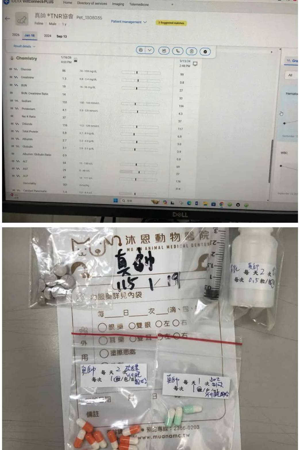2026年一月,因發現真帥精神不佳,連日嘔吐且食慾不振,因此安排於2026年1月16日沐恩醫院看診,初步檢查口腔、腹部檢查均無異常但體溫有偏高,血檢結果也無特別異常部分因此先持續帶回觀察,後於1月17日持續無進食及嘔吐於是再於當日提前回診並留院觀察。