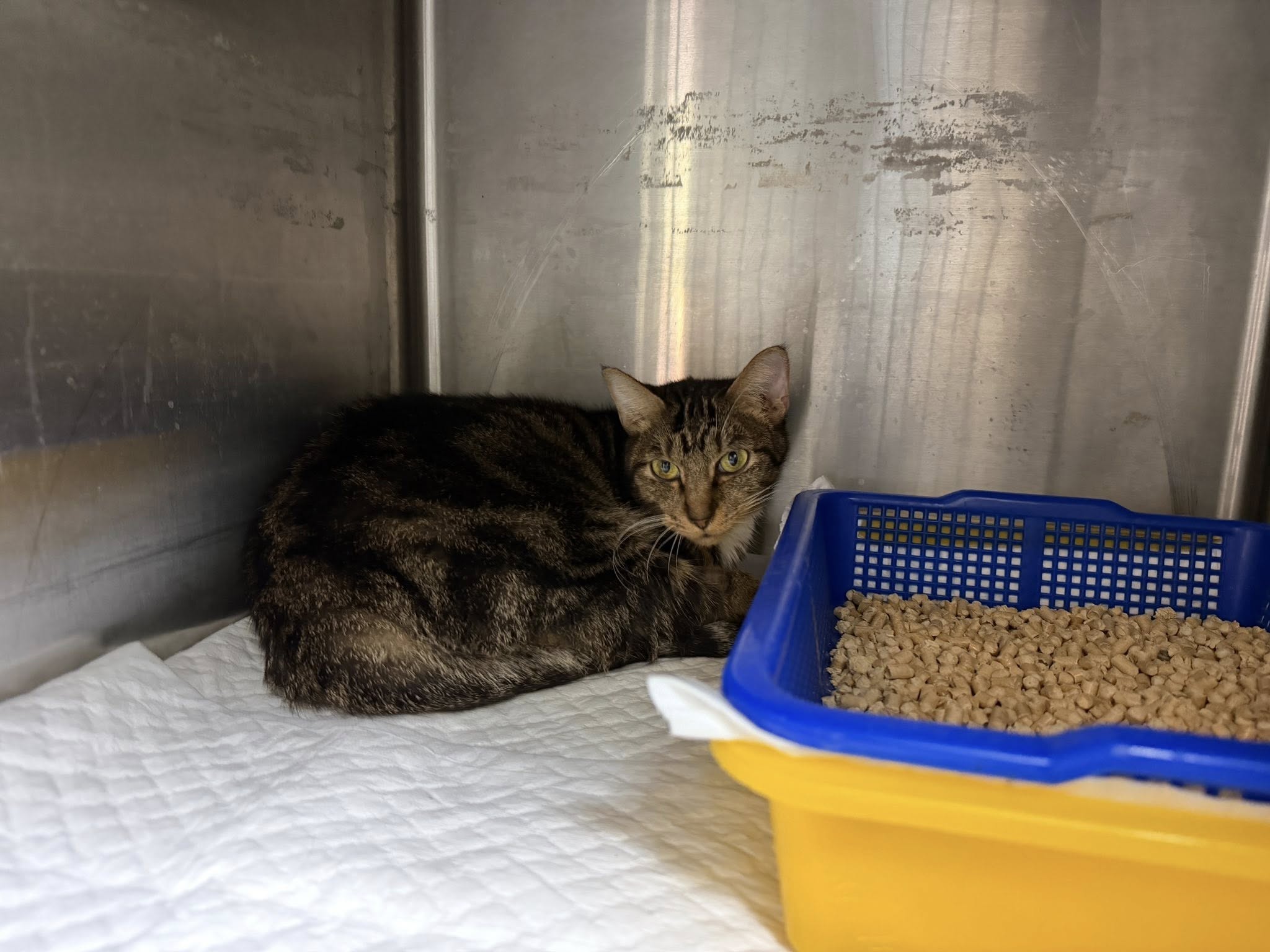 2025年7月3日,沒有再嘔吐辦理出院。 醫師表示,因為六六的身體狀況,可能會比正常情況較晚生產,預產期大概是再2-3週,但當晚7點多,六六突然開始生產,到8:00多,陸續將5隻小貓生出,但很遺憾的,貓寶寶們發育尚未完全,生出後沒多久都成了小小天使,六六生產過程,工作人員與沐恩林院長保持聯繫,幫六六打皮下輸液及減少用藥並給倍補血,也準備肉泥+魚泥+乾乾+水,拿給六六吃,還好六六吃吃停停的也吃掉不少,接著幾天,六六陸續排除惡露,擔心原本就有貧血情況會更嚴重,因此提前於7月9日至沐恩醫院回診檢查,還好血檢結果,包括紅血球等各項指數都有進步,這也是因為沒有小寶寶一起吸收營養,讓六六可以恢復得較快,也因此身上原本因為很多跳蚤而剃掉的毛開始長出來了,自已進食情況有進步,所以可以拆掉食道餵管,拆掉後的小傷口擦上優碘藥膏、包紮,口腔檢查,有牙結石、沒有口炎情況,但無法判斷實際年齡,耳朵檢查,右耳有較多髒垢還好沒有看到耳芥,這次檢查結果血檢有進步、體重增加,醫師計劃兩週之後可以打預防針,再兩週做血檢,只要沒有異常就安排絕育手術。 六六因車禍撞傷,右邊眉骨上方骨頭還有點凸起,腦部受到影響,有時看起來呆呆的,但還好多數時候都還是能夠自己吃飯上廁所,除了醫院用藥,安養之家也準備了補血、增加抵抗力的保健品,希望能夠幫六六的健康盡快穩定。