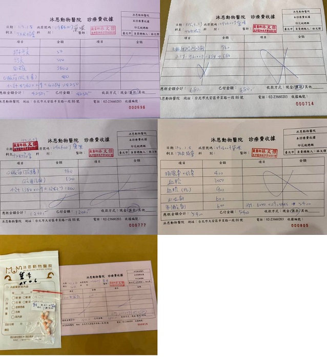 2026年1月8日於沐恩回診,血檢肝腎指數都正常,一樣吃低蛋白質飼料。淚眼鼻涕嚴重,先吃一週抗生素。吃完後回報精神食慾再拿一週。2026年2月因黛咪食慾不振精神欠佳因此提前回診,今日體溫偏高39.2,呼吸有鼻塞雜音。胰臟炎陰性,因此研判可能是腸胃炎,在醫院已先施打格林150cc及止吐制酸針劑。若持續不吃飯要灌食,早晚10g 飼料粉加胰寶半顆及20cc水並且先關籠觀察,目前黛咪食慾已逐漸恢復。本筆醫助是2026年1月8日至2026年2月6日間於沐恩醫院的費用,包含看診血檢及用藥。