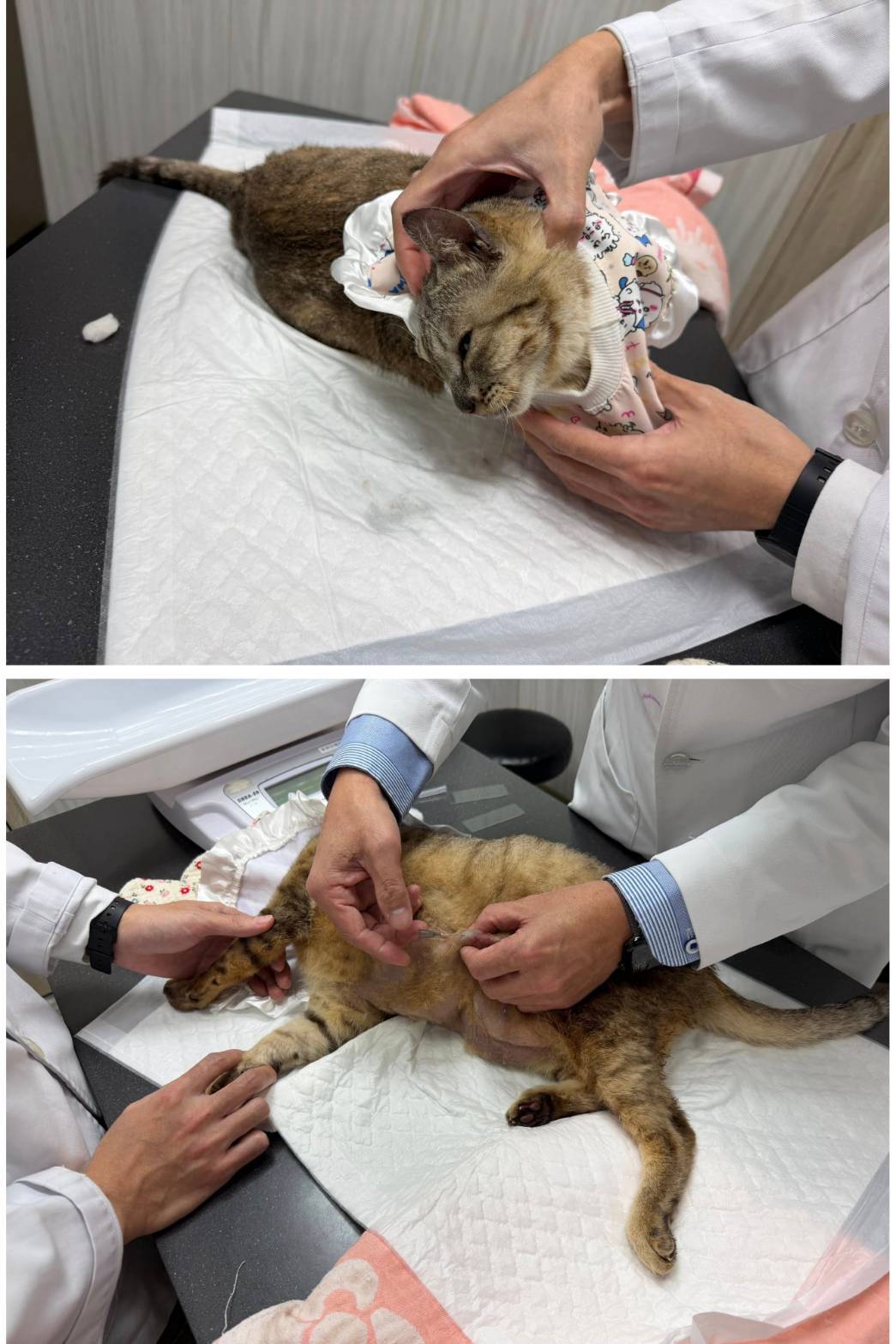候補人員: 因考慮無人遞補、轉匯收費、信用卡刷卡匯率、寄送收據與郵資等成本,每筆醫助人數將斟酌彈性增加1-5位名額。 動物病情說明: 巴克小貓是民眾在2024年6月27日被民眾發現倒在路邊,疑似遭遇車禍,後來送至五股的動物醫院,當時臉部流血、血尿、腹瀉、脫水、意識差,先給予點滴治療及裝上鼻胃管,定時擠便尿及餵食,因便便有發現寄生蟲,也有給予驅蟲,但住院數日狀況仍不穩定,民眾向協會求助,經由協會聯絡安排,於2024年7月2日轉診至沐恩醫院,到院時無意識、體溫低、脫水、頭部後仰、身體呈現角弓反張,X光檢查無明顯骨折或是脊椎錯位,無氣胸或是肺炎情形,血檢輕微貧血及白血球上升,根據先前他院的病史,推測是腦部嚴重創傷,當天辦理住院、24小時的氧氣保暖照護、給予支持性療法,靜脈點滴注射及抗生素、類固醇等藥物,巴克因腦部受創無法控制排尿,須由人工擠尿擠便,治療後漸漸的能由針筒口餵吃肉泥,也會出現滑動手腳動作,住院期間醫院助理也使用大毛巾及止滑墊作為輔助支撐,讓巴克小貓練習站立、復健。