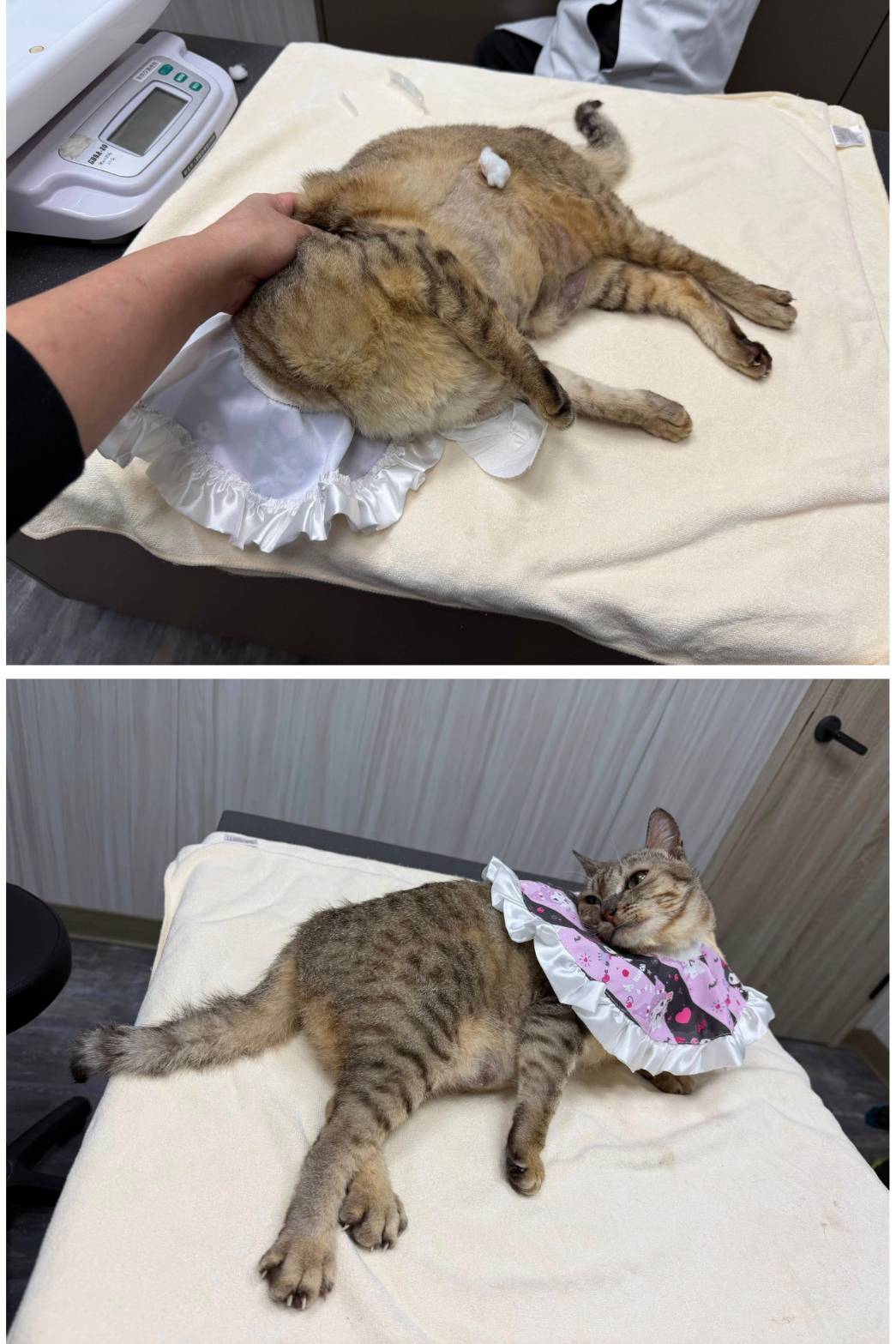 近期於2025年12月10日回診,醫生表示血檢正常但體重增重太多,需減少灌食量,同時因右耳長期往下所以耳藥無法有效停留,所以仍有酵母菌問題需加強耳劑量,一日仍需維持2次清潔。身上黴菌已有改善,僅有尾巴尖端有黴菌已於現場剃毛處理。此次因體重增加所以會再做藥物調整。