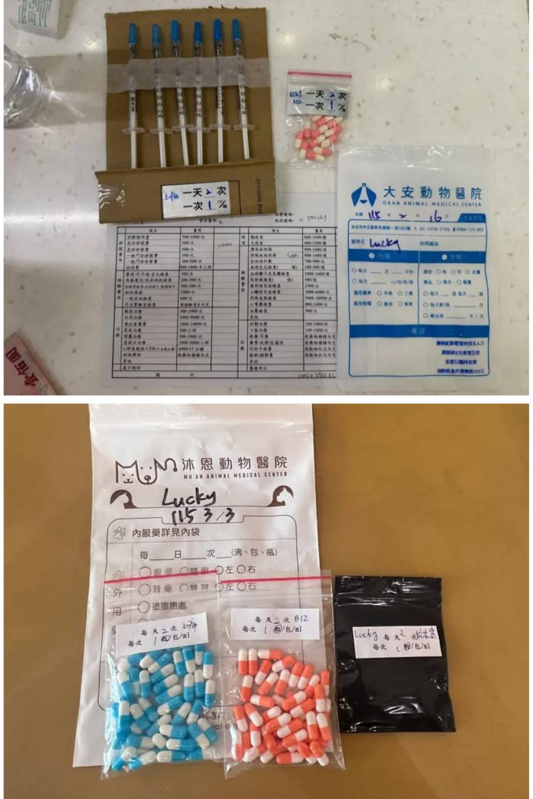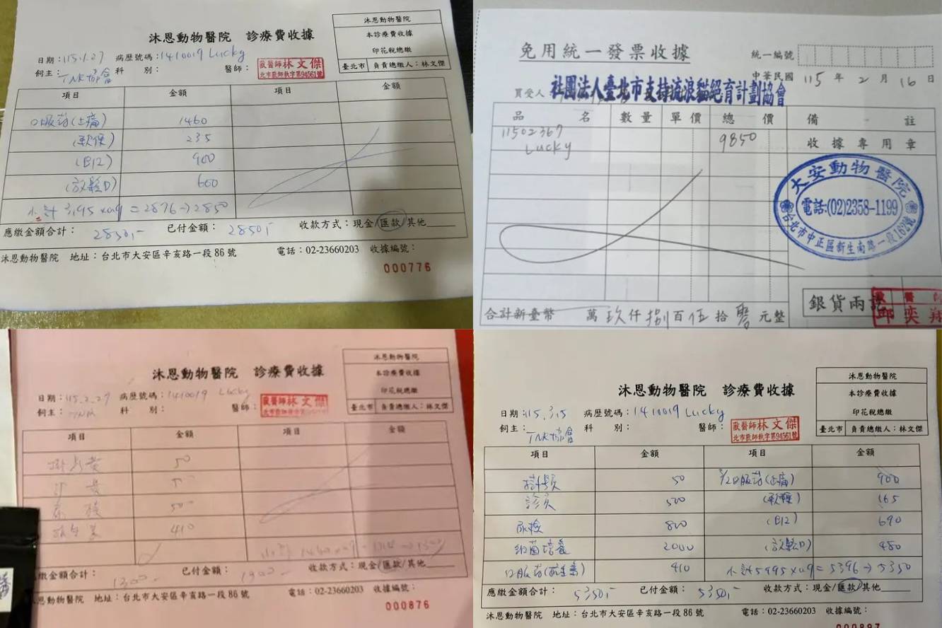 本筆醫助為2026年2月16日於大安動物醫院看診費用及2026年2月27日至2026年3月5日於沐恩醫院的費用,包含看診,X光及超音波檢驗,血檢及用藥。