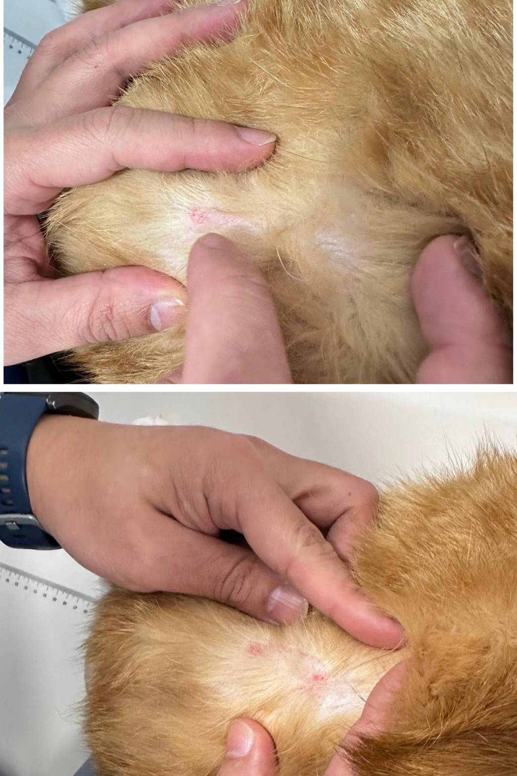 看起來是過敏或摩擦傷,先不剃毛溫水清潔,