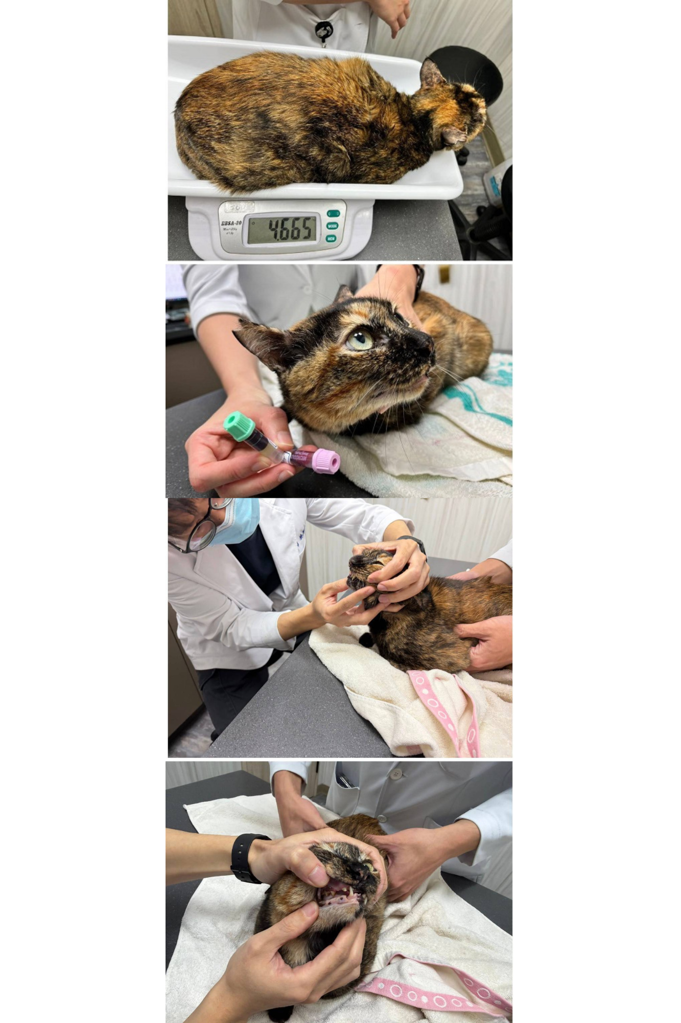 此次進行血檢及血糖曲線減、身形卻日漸消瘦,於是就醫檢查,發現有初期糖尿病現象,現在不能再讓她亂跑了,於是安置於貓屋,希望她能很快適應團體生活。