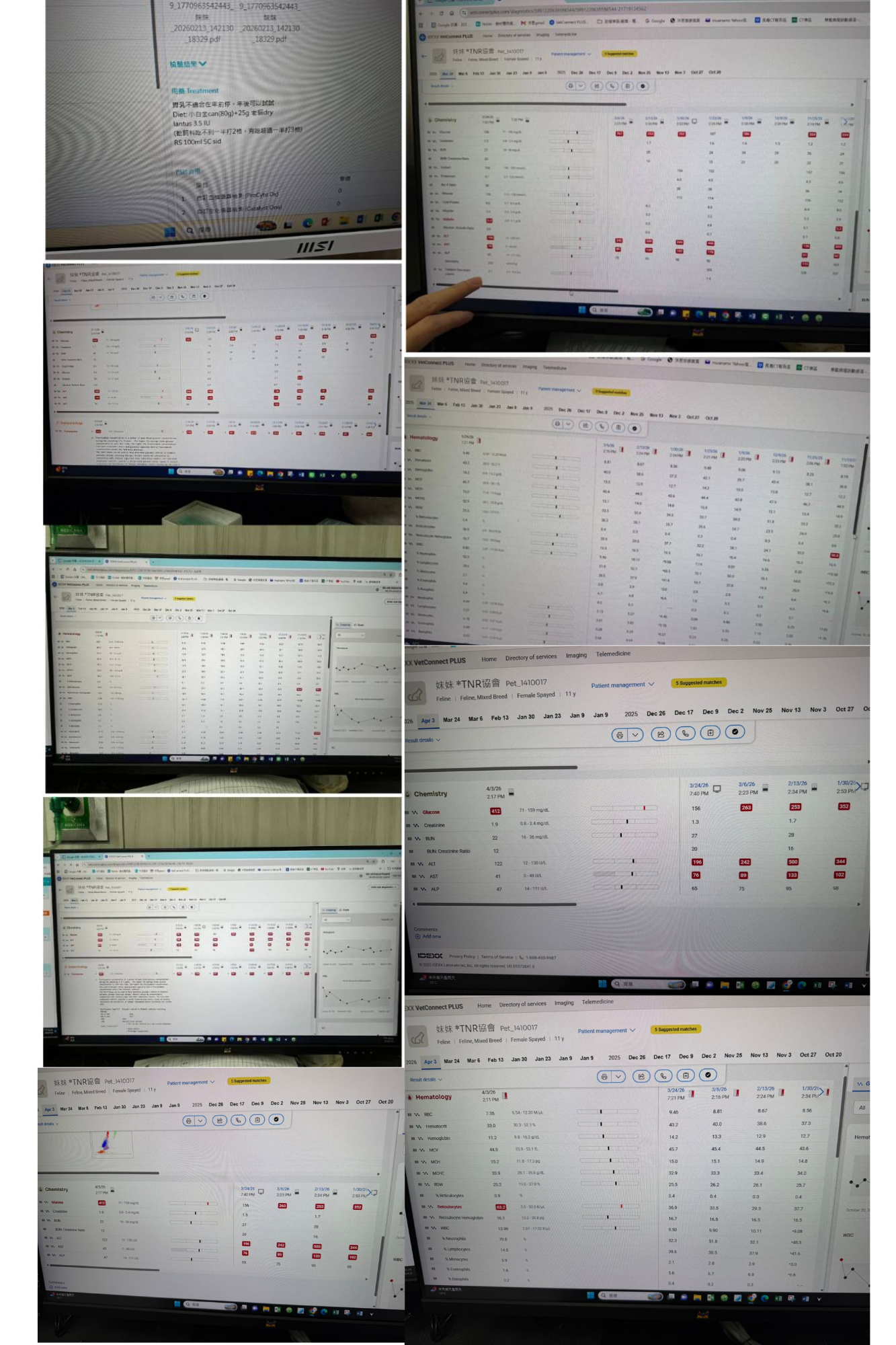 2025年11月25日至12月17日間持續固定回診檢測血糖,但血糖卻依然逐漸升高,胰島素施打劑量也逐量增加,於是在排除食物給予方面皆有嚴格控制無影響下,醫生於12月17日回診時決定將妹妹留院觀察,12月18日出院後,決定換購蘭德仕胰島素施打再持續觀察血糖指數是否可順利下降,飲食部分則改為100g catuna開心金罐罐頭及25g老貓飼料。