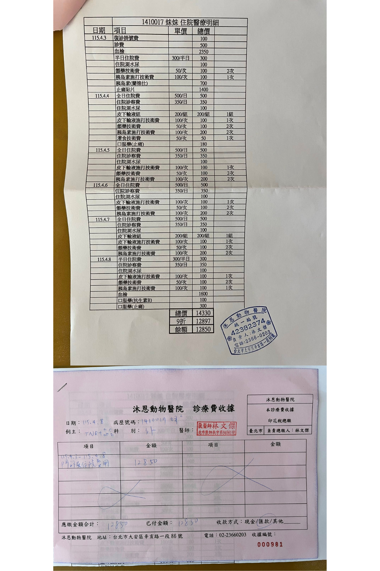 目前妹妹在台北安養之家這段時間, 已可以看見她逐漸放鬆適應, 只要呼喚她都會溫柔的回應,希望能讓妹妹的老年生活穩定控制病情。本筆醫助是妹妹自2025年12月17日至2025年12月18日一筆於沐恩醫院住院費用及2026年2月13日至2026年4月15日間於沐恩醫院的費用,包含回診、住院、血糖檢測、X光、牙周手術及用藥等等。