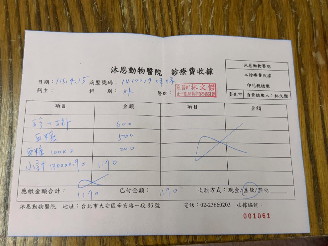 先開立少許GABA止痛,請大家觀察這兩天的食欲以及精神狀況,週五回報。