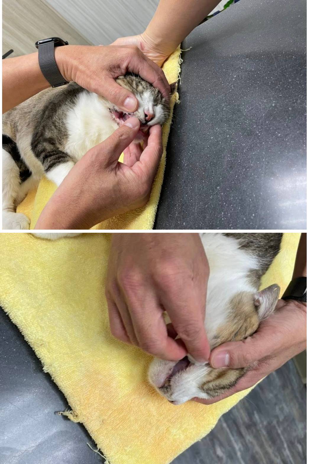 主題: 治療下巴與耳朵紅腫的小點點 申請者姓名: TNR協會 花色: 白底虎班 申請日期: 2026-03-30 13:05:22 申請者部落格: https://www.facebook.com/SupportTNR/?locale=zh_TW 申請者臉書網址: https://www.facebook.com/SupportTNR/?locale=zh_TW 所在縣市/合作醫院: 台北市/沐恩動物醫院 治療費用: 14700元 需求名額: 49人 平均每單位: 300元 已報名名額: 0 尚需求名額: 49 報名人員: 候補人員: 因考慮無人遞補、轉匯收費、信用卡刷卡匯率、寄送收據與郵資等成本,每筆醫助人數將斟酌彈性增加1-5位名額。 動物病情說明: 年初的冬天,愛心民眾無意在車下遇見狼狽的街貓,從此,孩子病痛的外表,就深深烙印在心坎上。歷經天人交戰,幾次刻意路過察看...終於伸出援手幫助孩子,並取名點點(跟協會6月安置的捕獸夾貓同名)。孩子滿口爛牙,但太瘦弱、無法拔牙,住院快2個月,狀況穩定些,才進行牙周手術,術中多次無自主呼吸。原以為術後狀況會漸入佳境,沒想到,貓咪下巴竟莫名腫起來。這時候愛貓民眾已經燃燒8萬多元的醫療費了。