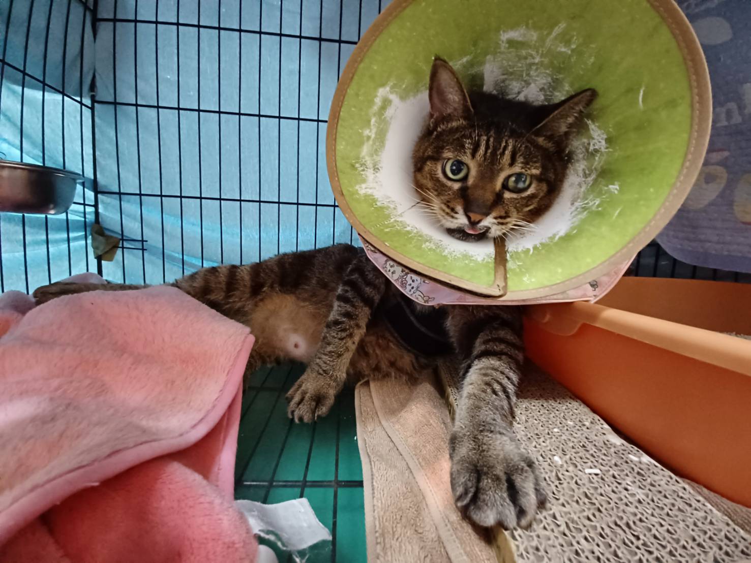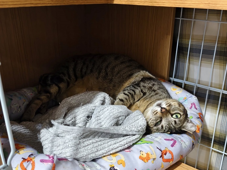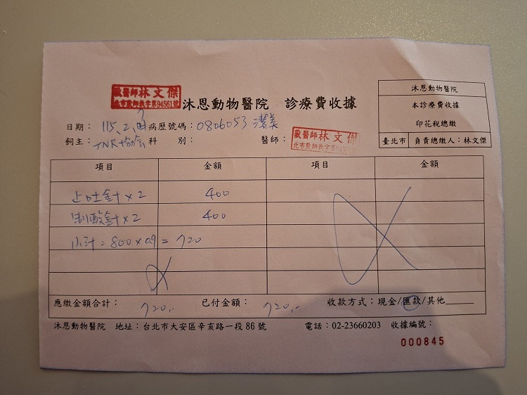 2025年3月28日因妙咪連續幾日拉肚子,雖食慾精神仍正常,但後來還有嘔吐,經詢問長青醫師後先至沐恩醫院取回制酸止吐針劑幫妙咪施打並同時打皮下輸液,打三天針劑及吃止瀉藥後,妙咪沒有再嘔吐、也沒有再拉肚子了。