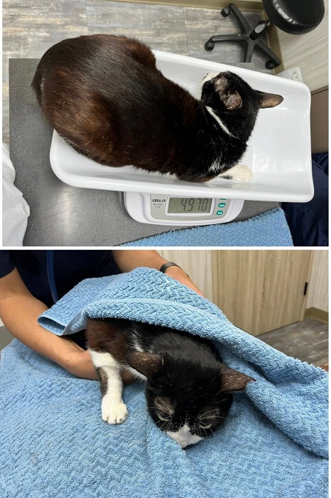 候補人員: 因考慮無人遞補、轉匯收費、信用卡刷卡匯率、寄送收據與郵資等成本,每筆醫助人數將斟酌彈性增加1-5位名額。 動物病情說明: 新阿賓原本是台北市濱江市場有好心人餵養的街貓,2023年1月間協會接到通報,告知新阿賓疑似受傷,協會工作人員於於2023年1月30日前往誘捕後送至沐恩醫院,因新阿賓非常緊張及抗拒,須鎮定才能進行檢查,經觸診及X光檢查,左後腿明顯腫脹,但無骨折與外傷,懷疑是舊傷引起發炎反應,抽取組織液送檢,血檢結果白血球指數高、低鉀,其餘指數皆在正常範圍,口腔所剩牙齒無幾,但皆是爛牙、犬齒只剩一個且牙周外露,經掃瞄晶片,是2011年公費絕育之成年公貓,初估年紀約在14、15歲間。
