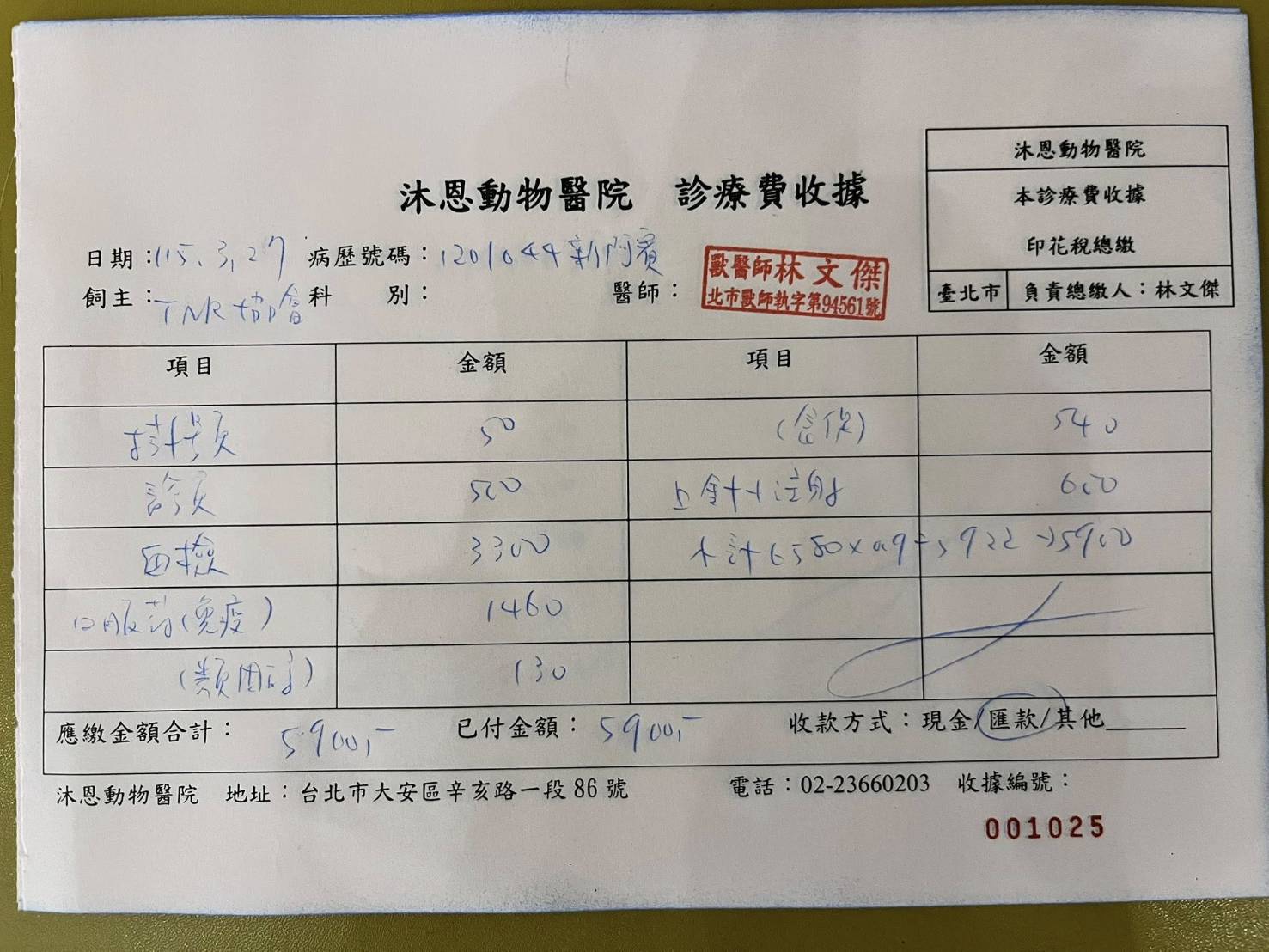 於2025年11月5日回診進行血液檢查,血檢指數都無異常變化。腎指數雖高但有下降一點,因此用藥及皮下都照舊進行。在於12月31日於沐恩回診,此次進行胜肽治療,血檢指數都無異常保持良好,食慾精神都良好的狀況下可延長回診時間。2026年3月27日於沐恩就診進行血檢及胜肽治療,血檢報告無異常狀況良好持平。本筆醫助是2026年3月27日於沐恩醫院的費用,包含看診血檢,胜肽治療及用藥。