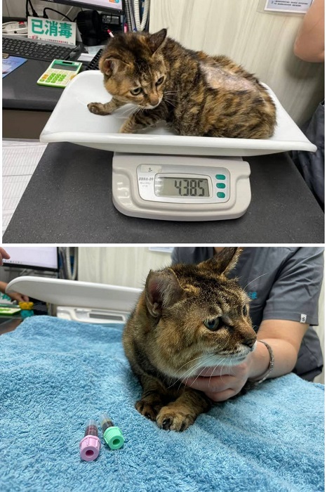 近期因背部感染黴菌於2025年8月15日再次回診,腎指數跟肝指數都超標,建議先關籠觀察食慾狀況,需要吃腎處方,另看是不是食物種類影。於2025年8月22日回診,腎指數跟肝指數稍降,但禁止吃點心,吃罐頭跟飼料就好。目前持續用藥。