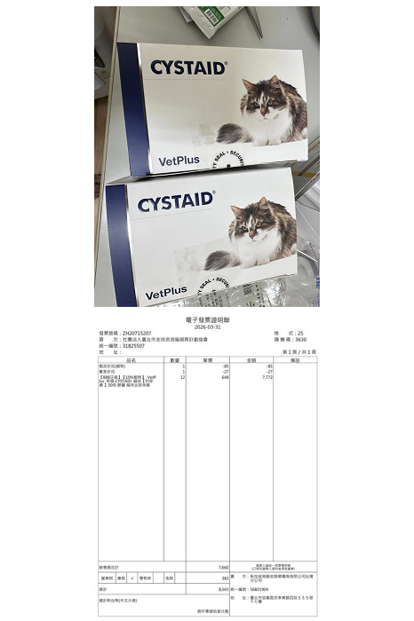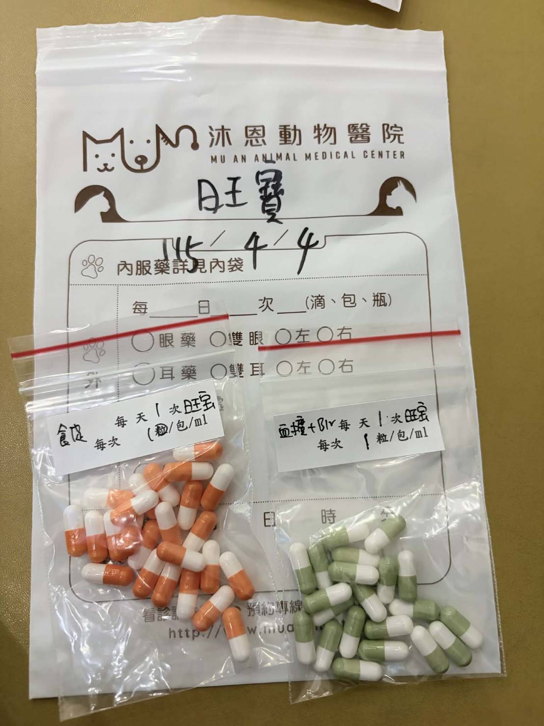 旺寶平時的食物都是特別挑選、且都將食物弄碎才好消化,就是因為旺寶的消化道較為脆弱,協會對每一隻貓咪的特別需求都是相當用心的,旺寶的腎指數高還有偶爾的消化道問題,都須持續醫療用藥,本筆醫助是2026年4月2日於沐恩醫院看診的費用,包含血檢及用藥。