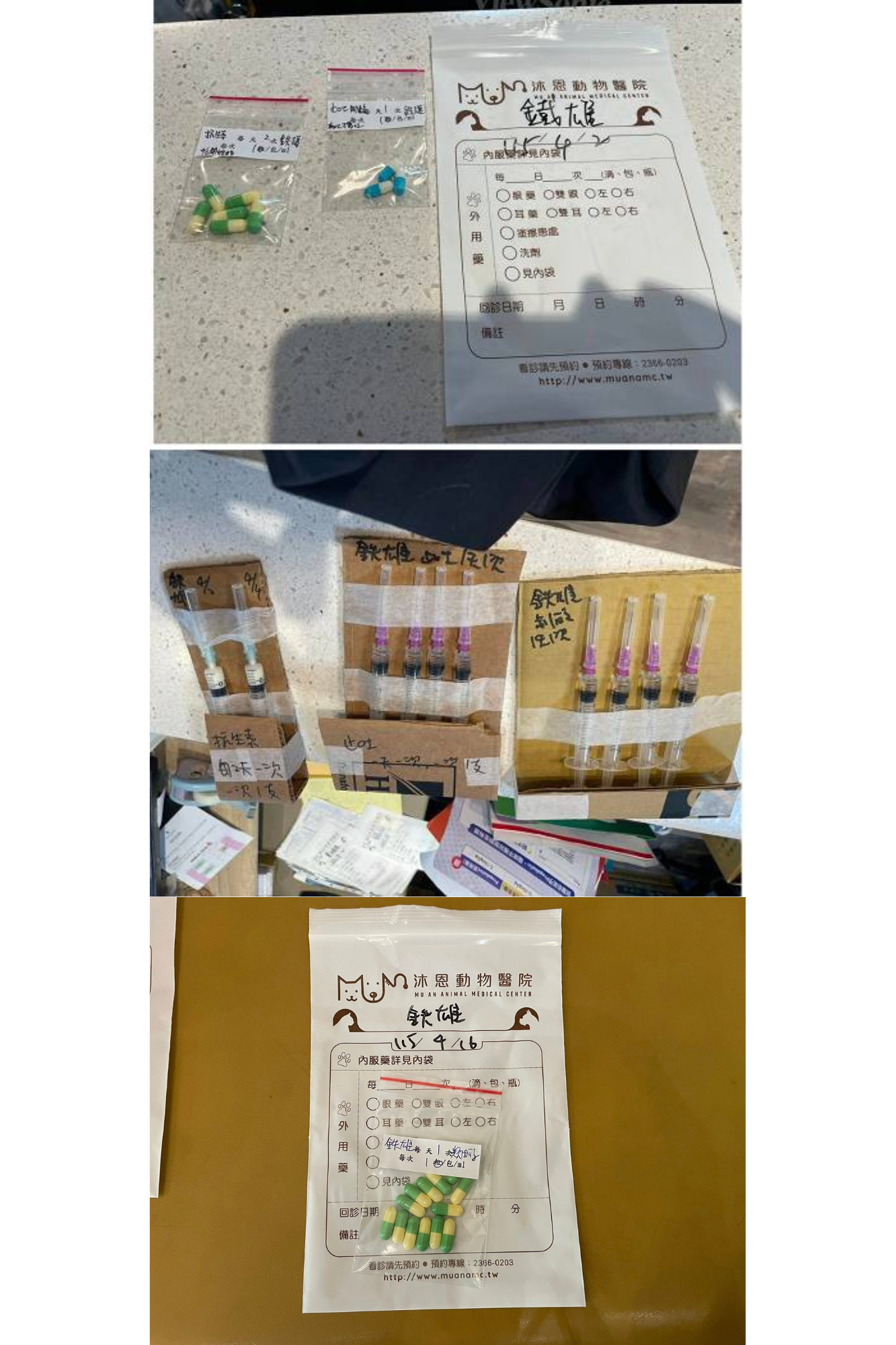 1.抗生素T:每天2次,每次8ml,早晚皮下施打。(4/11晚上打完停)需避光冷藏。