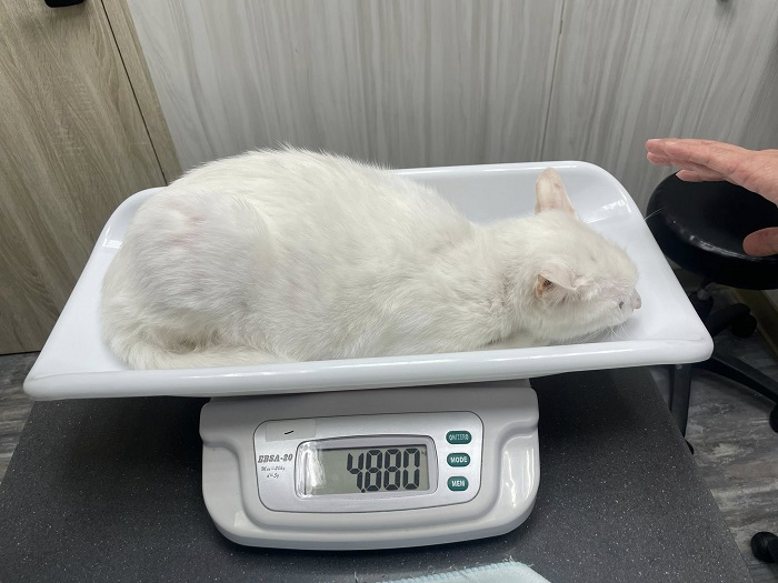 Ganza白是靠近腳踝的關節處骨折,因小貓骨頭軟,手術介入效果不會很理想,住院期間做血巴東蟲檢驗為陰性、愛滋白血二合一陰性,也有吃體內驅蟲藥,10月27日狀況較為穩定,出院住進安養之家照護。