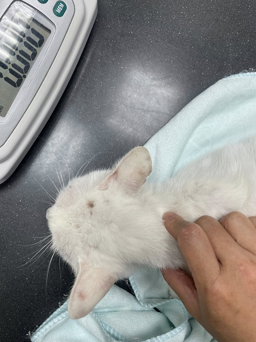 候補人員: 因考慮無人遞補、轉匯收費、信用卡刷卡匯率、寄送收據與郵資等成本,每筆醫助人數將斟酌彈性增加1-5位名額。 動物病情說明: Ganza白是來自貢寮區的小貓,協會多年來持續在該區執行TNR及提供各種給貓咪的物資用品,在2021年10月中旬,當地一位愛媽託人協助幫忙餵食兩週,代理餵養人通報協會附近仍有貓咪未紮,於是工作人員在10月12日前往察看,發現有母帶子貓咪,其中一隻小白貓的右後腿拖行走路,志工將腳傷小白貓誘捕就醫,結果同胎另隻也是小白貓一起進了誘捕籠,便將二貓一起帶走,但母貓驚慌躲避沒有捉到,擇日再進行誘捕絕育。
