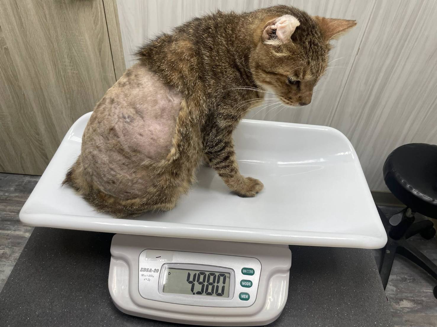 數例為愛滋及血巴東,所以再送驗血巴東檢查,幸好收到報告後血巴東是陰性,因此研判貧血原因可能是跳蚤太多及營養不良,住院期間又發現有毛囊蟲,打針及吃藥至狀況穩定做了耳血腫治療的手術,住院近一個月時間、狀況較為穩定,辦理出院接回安養之家,在內科方面治療至較為穩定、為了改善口炎情況,於2022年3月22日進行牙周手術全口拔牙。