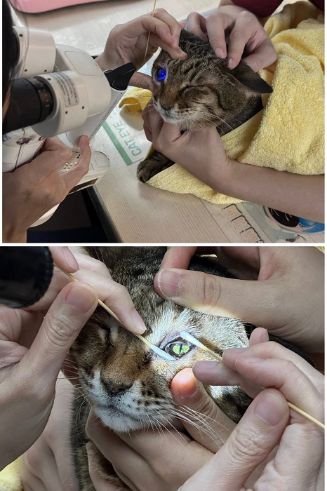 今天先做清創治療並持續點眼藥,待一週後回診看恢復情況。