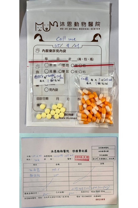 因應天氣變化,安養之家的貓房會視天氣變化開冷暖氣、開空氣清淨機並補充相關營養保健品,希望能讓callme的呼吸道問題能較為穩定,至目前callme的精神食慾都還不錯,也一樣每天找志工撒嬌討拍拍,callme現在圓滾滾的模樣與剛被救援時的紙片身材相比,真的是雲泥天壤之別,協會多年來持續的給她最好的醫療及用心照顧,讓callme能得到幸福新生,只是她的呼吸道問題還需持續回診用藥。本筆醫助是2026年4月21日間於沐恩醫院取藥的費用及2026年4月23日於極光醫院看診的費用,包含眼部檢測及用藥。