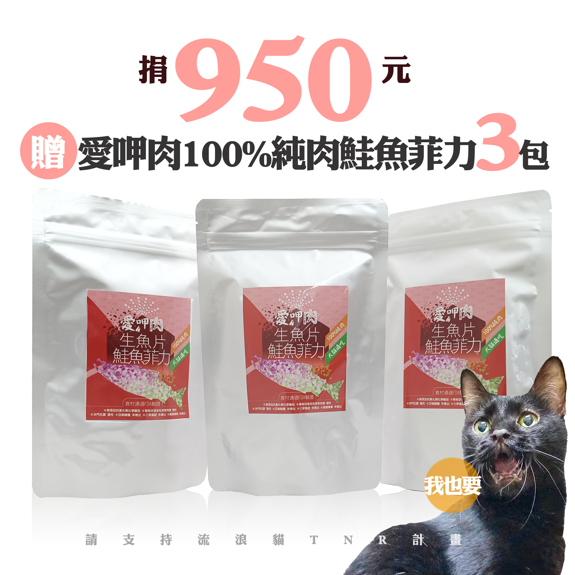 候補人員: 說明: 捐950元贈愛呷肉100%純肉鮭魚菲力(35g)三包