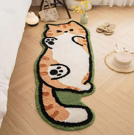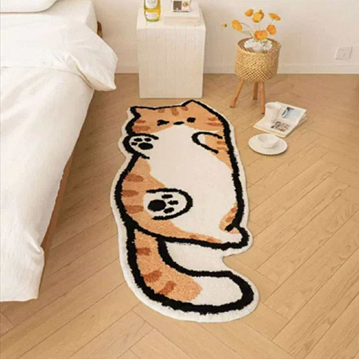 可愛貓咪圖案、針腳細密,仿羊絨材質,保暖透氣,可當床邊墊、貓咪臥墊或腳踏墊。