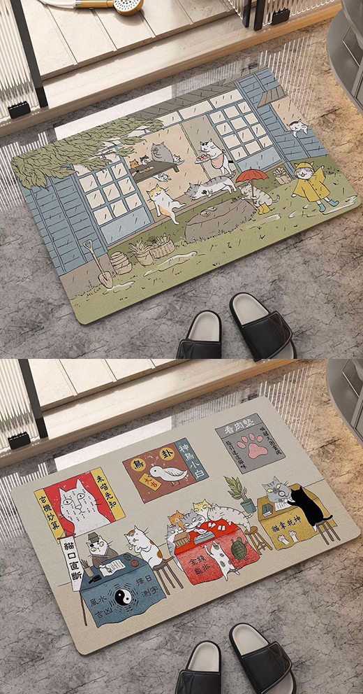 硅藻土地墊,40*60cm,止滑、吸水、快乾,可當腳踏墊、落砂墊、或是寵物餐墊,多種使用方式,圖案美觀可愛,皆為日式擬人貓生活。