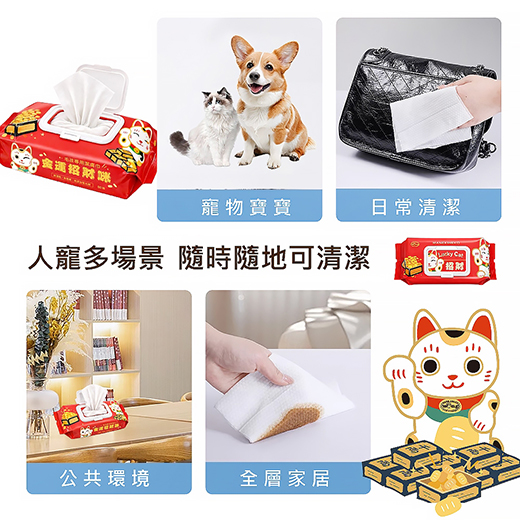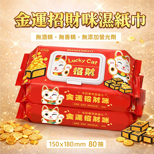 ●金運招財咪濕紙巾*2包●