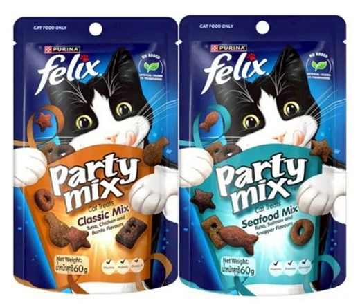 多種口味:喜躍 Party Mix 提供經典原味、炙燒烤肉和海洋鮮味等選擇,讓貓咪隨時享受不同的美味。