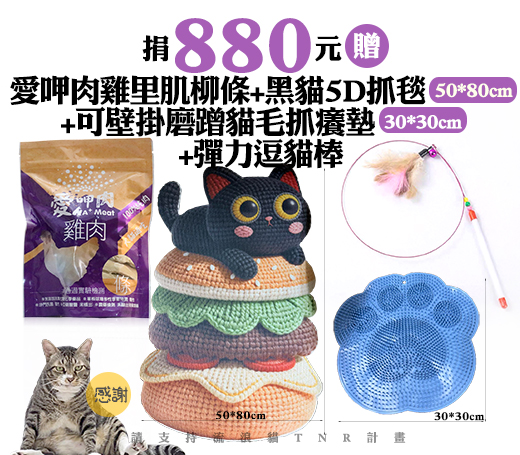 贈品名稱: 捐880元贈愛呷肉雞里肌柳條+黑貓5D抓毯(50*80cm)+可壁掛磨蹭貓毛抓癢墊(30*30cm)+彈力逗貓棒 贈品總數: 18人 每人捐款金額: 880元 已報名名額: 0 尚需求名額: 18 報名人員: 候補人員: 說明: 捐880元贈愛呷肉雞里肌柳條+黑貓5D抓毯(50*80cm)+可壁掛磨蹭貓毛抓癢墊(30*30cm)+彈力逗貓棒