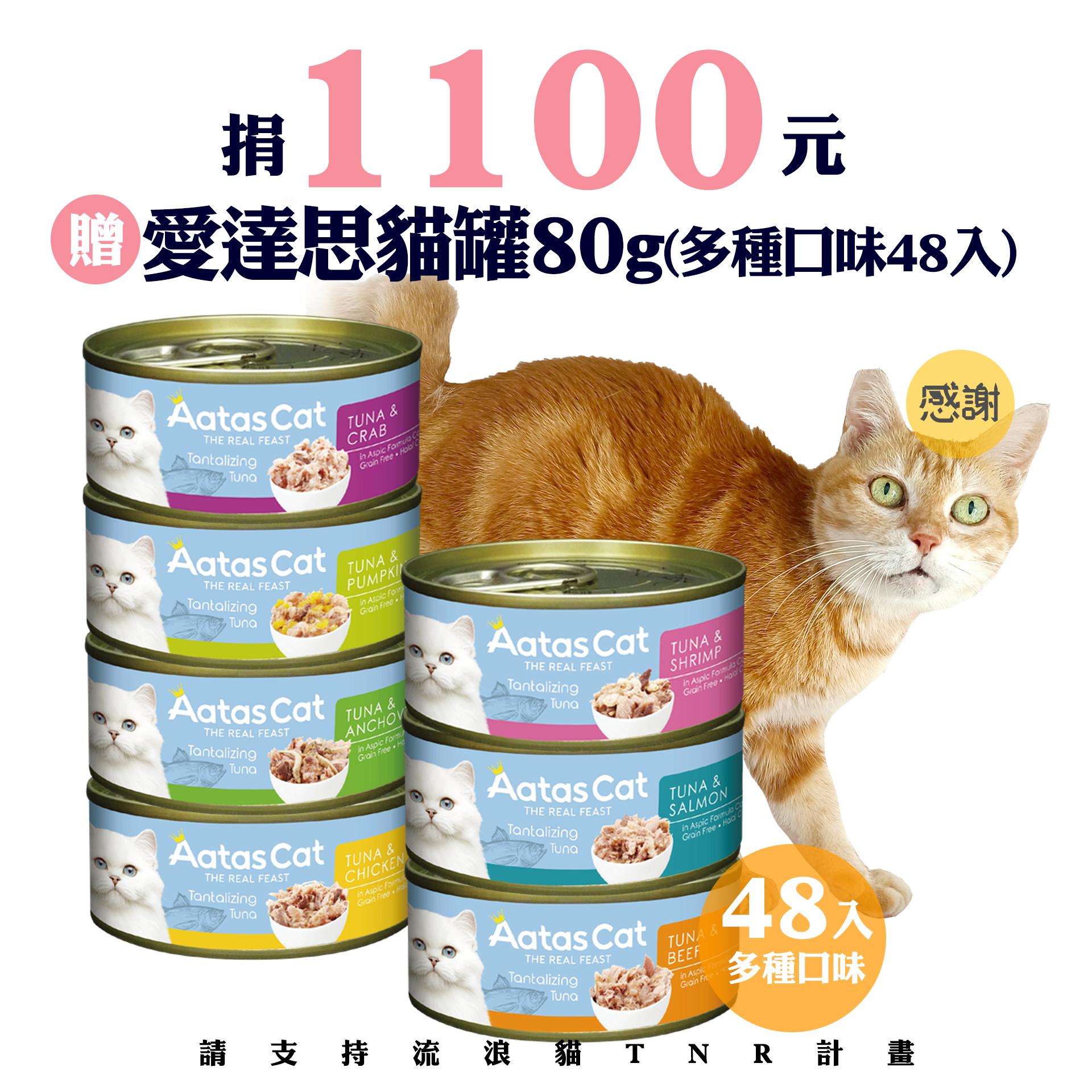贈品名稱: 捐1100元贈愛達思貓罐80g(多種口味48入) 贈品總數: 50人 每人捐款金額: 1100元 已報名名額: 0 尚需求名額: 50 報名人員: 候補人員: 說明: 捐1100元贈愛達思貓罐80g(多種口味48入)